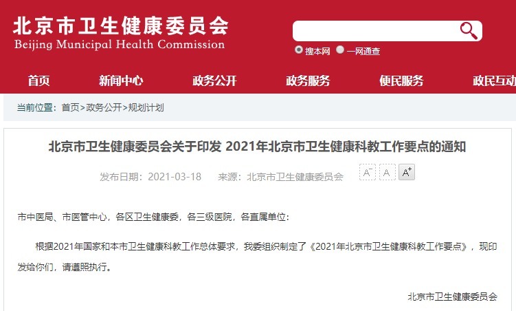 近日,北京市卫健委在官网上发布了《2021年北京市卫生健康科教工作要点》。
